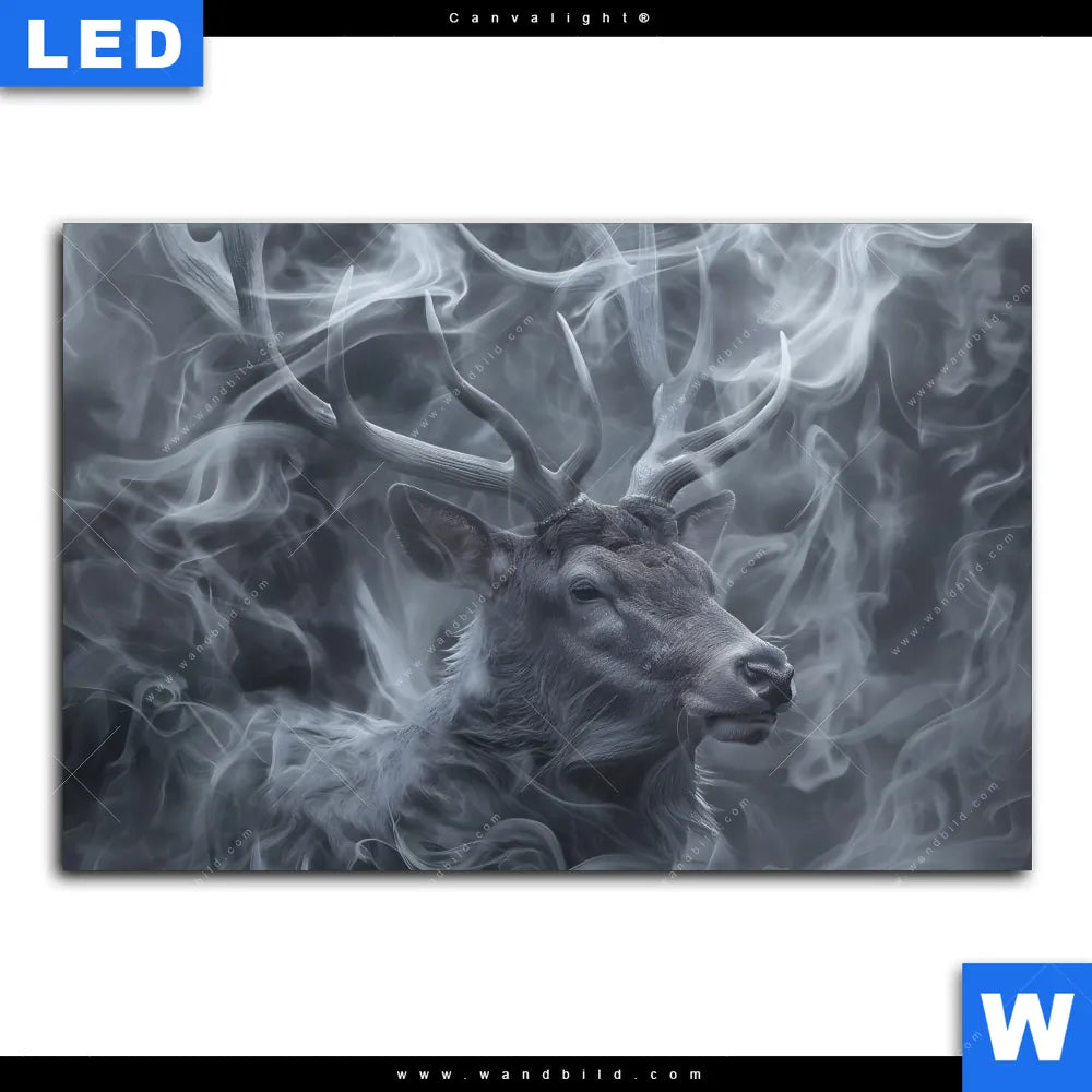 Canvalight® Leuchtbild | Mystischer Hirsch im Nebel | Querformat