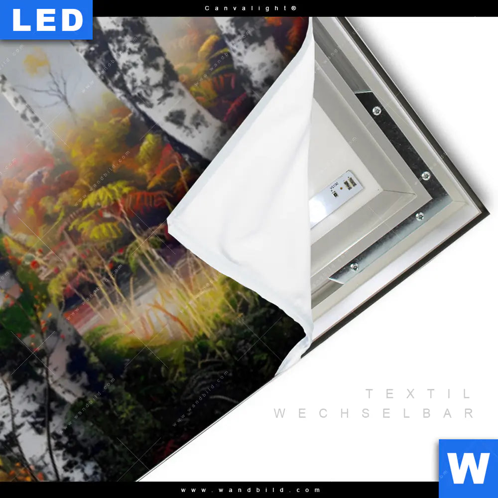 LED-Textilrahmen-Bild mit austauschbarem Landschaften, Wald - Bäume Textil-Druck (Wechselbild)