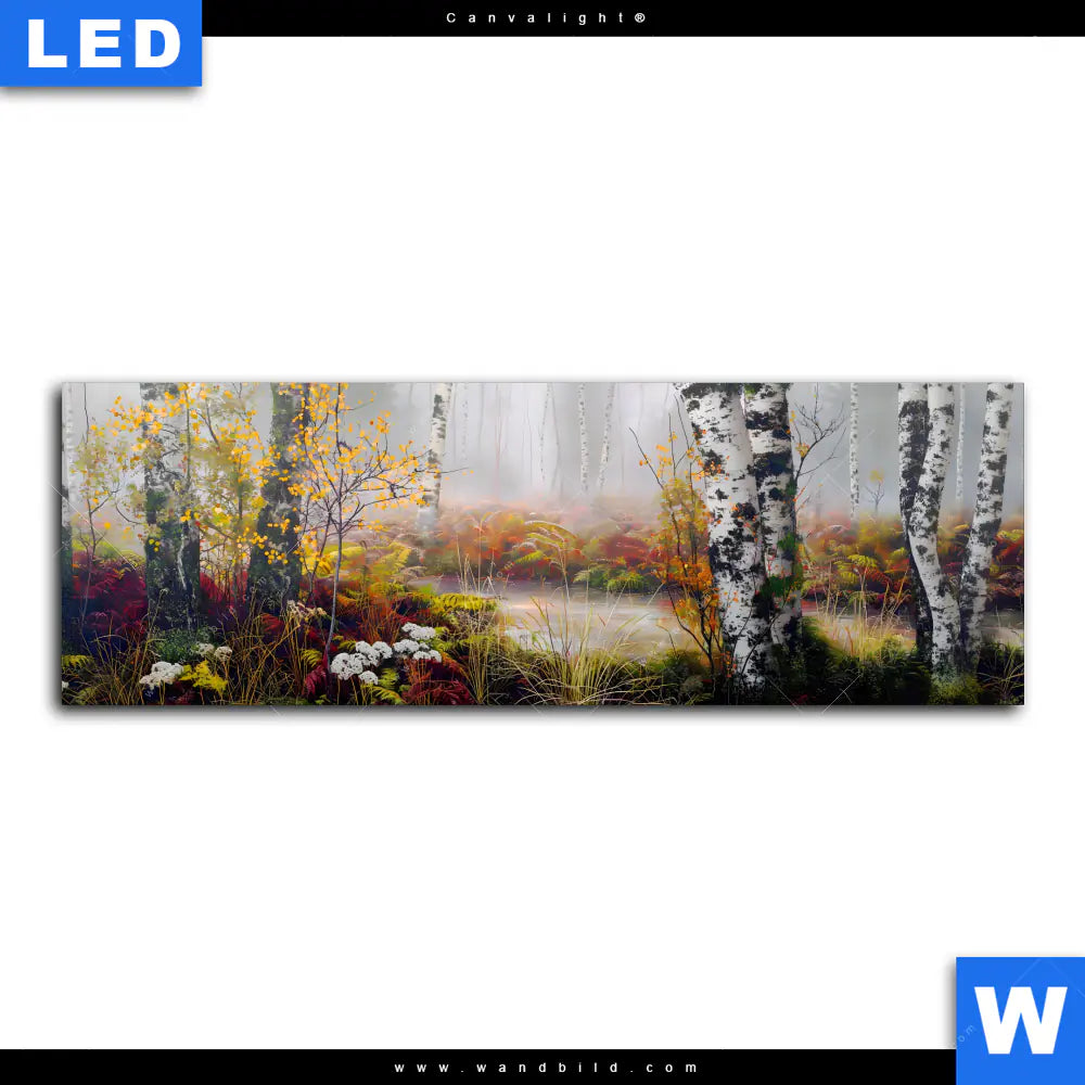 Canvalight® Leuchtbild | Naturidylle - Birken im Nebel | Panorama