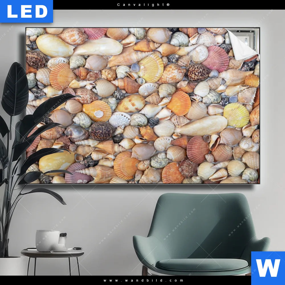 Canvalight® Leuchtbild | Viele Muscheln | Querformat