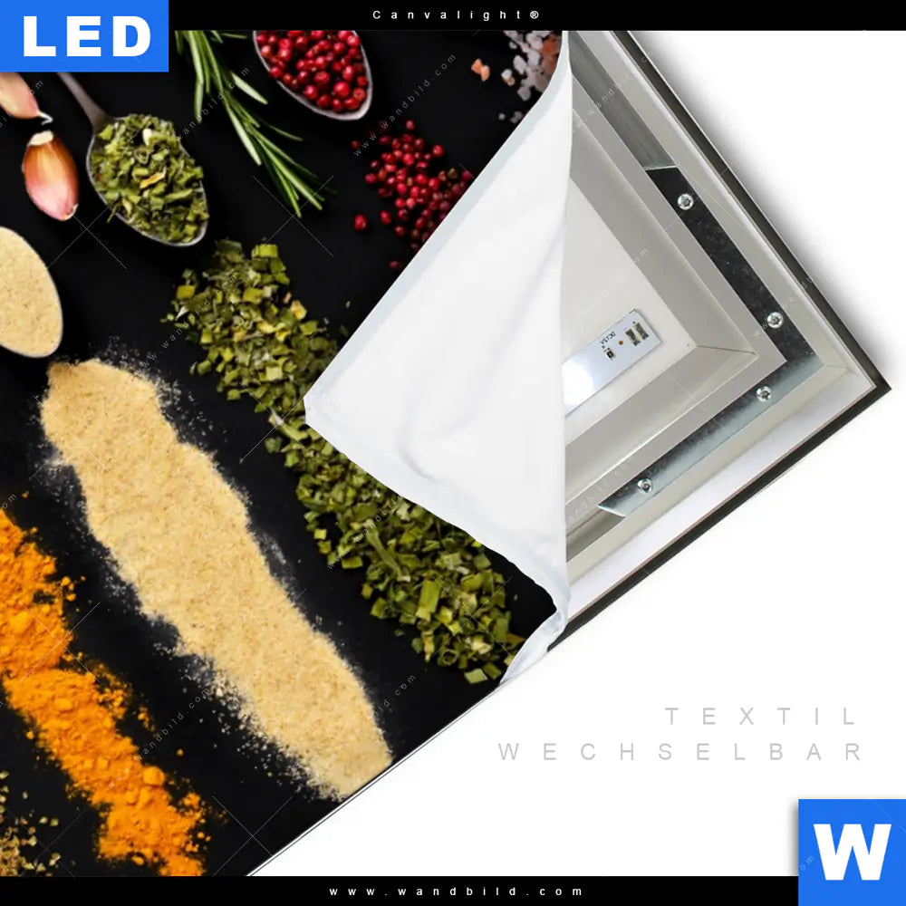 Canvalight® TEX Leuchtbild | Vielfalt an exotischen Gewürzen | Querformat