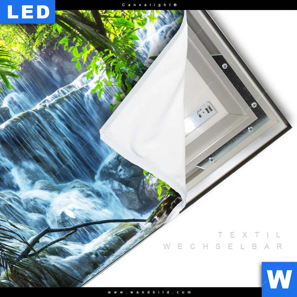 Canvalight® TEX Leuchtbild | Wasserfall in Mexiko | Quadrat