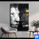 Leinwandbild | Weiße Löwin mit Goldblüten | Hochformat