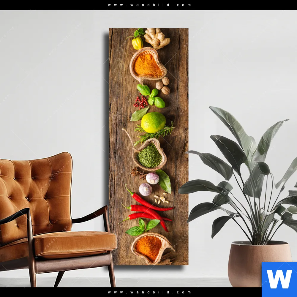 Leinwandbild | Gewürze & Kräuter auf Holz | Schmal