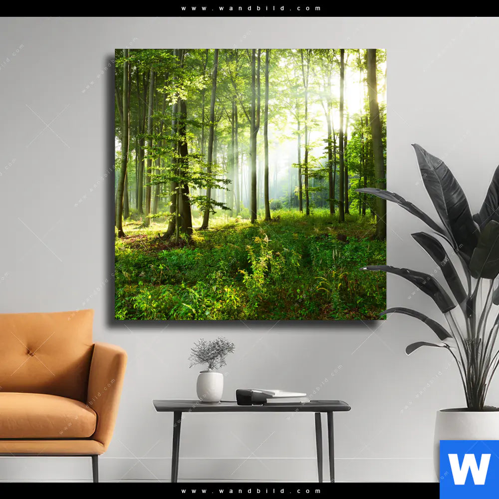 Leinwandbild | Sonniger Morgen im Wald | Quadrat
