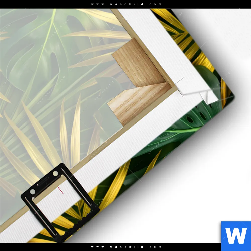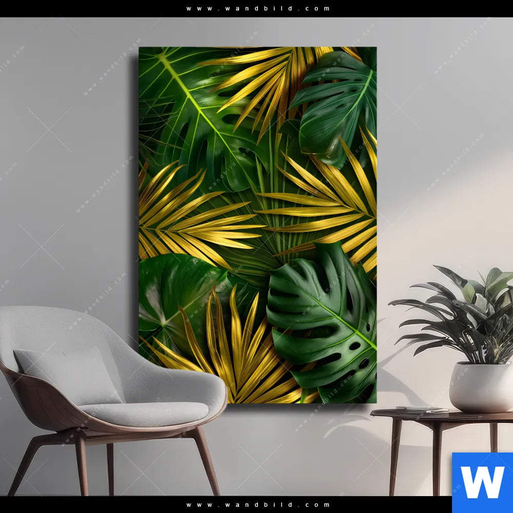 Leinwandbild | Blätter Gold Grün | Hochformat