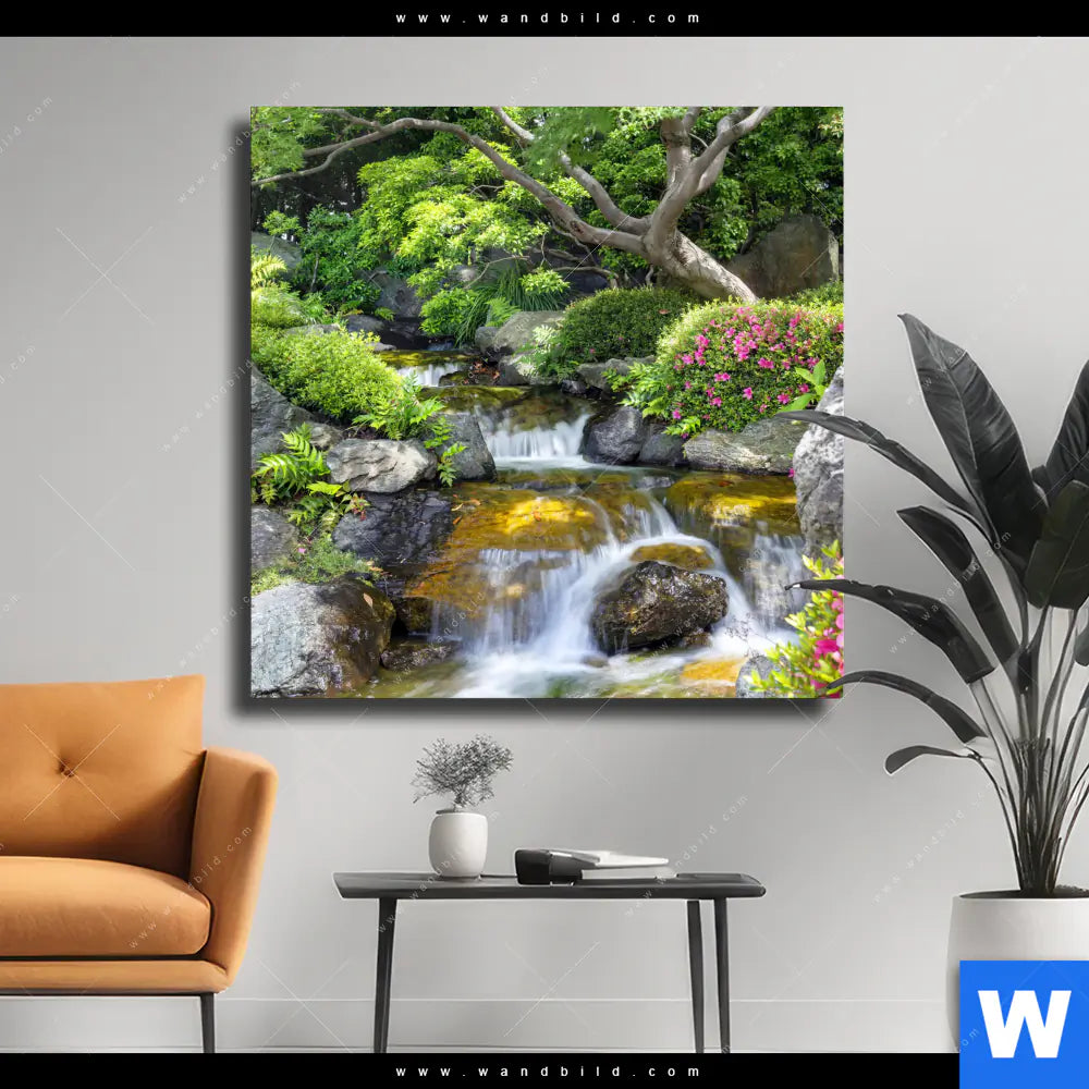 Leinwandbild | Japanischer Garten mit Wasserlauf | Quadrat