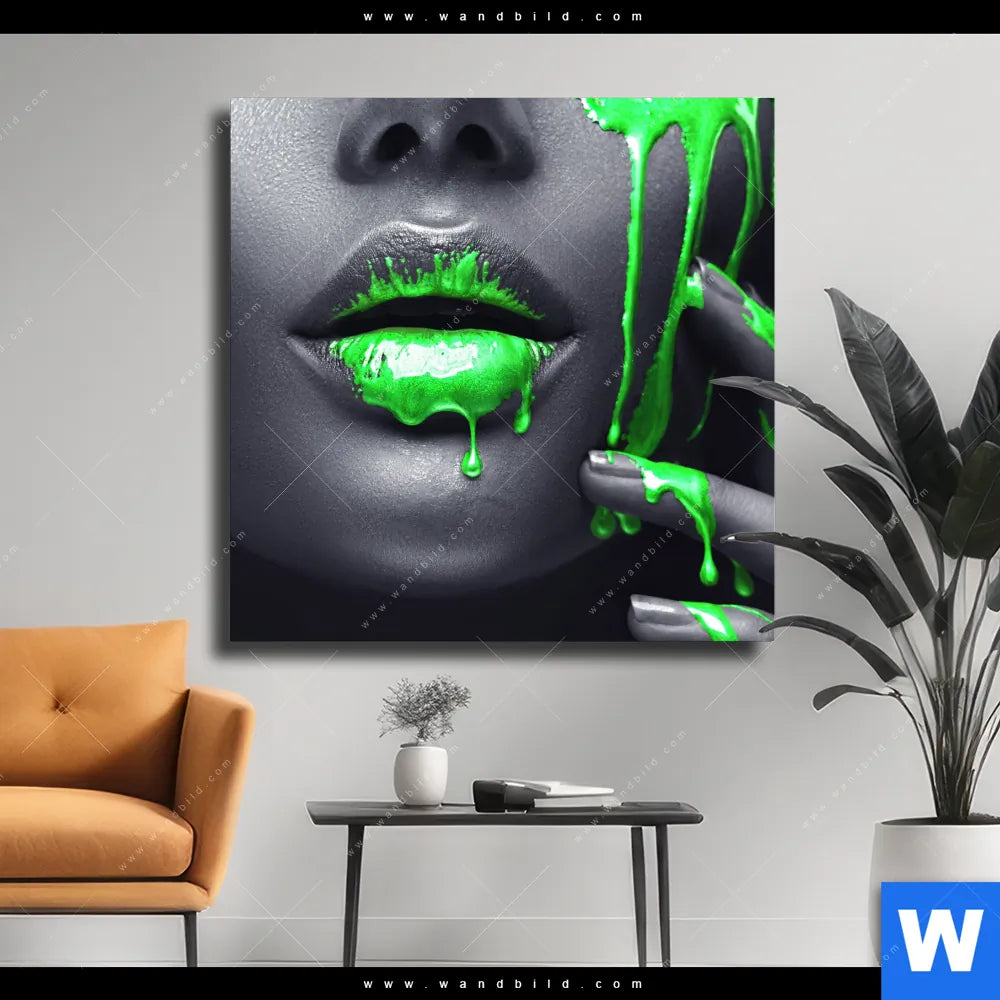 Leinwandbild | Lippen Silber & Grün | Quadrat