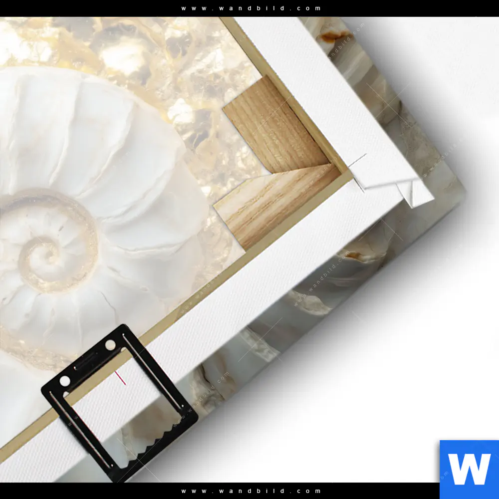 Leinwandbild | Muschelspirale mit Gold | Quadrat