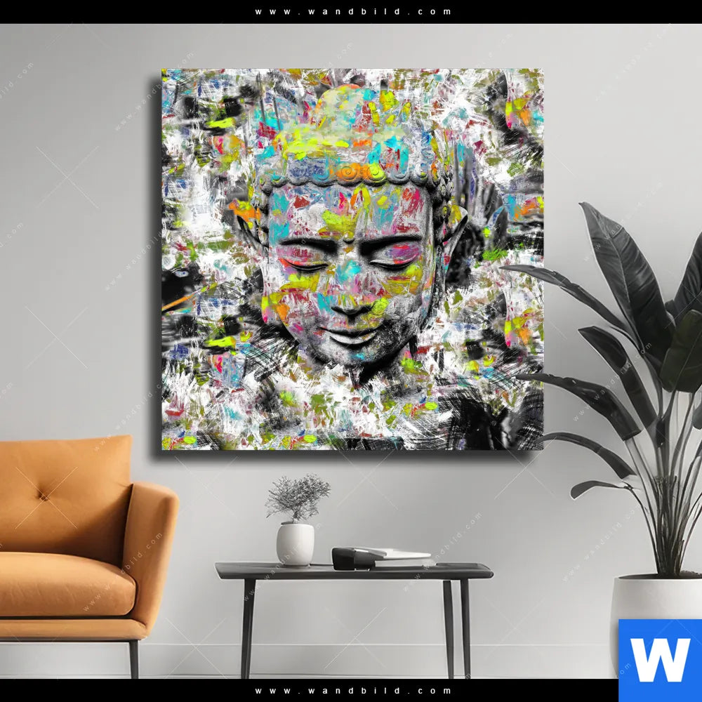 Leinwandbild | Pop Art Buddha Kopf | Quadrat