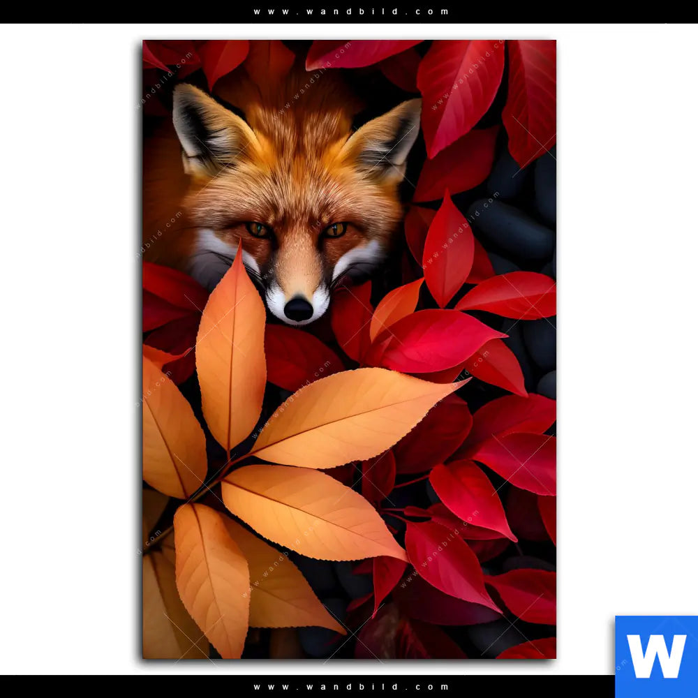 Leinwandbild | Fuchs im Herbstlaub | Hochformat