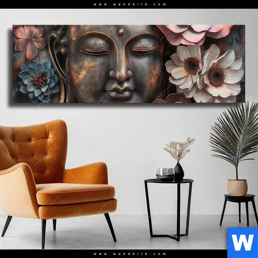 Leinwandbild | Spiritueller Buddha und Blumen | Panorama