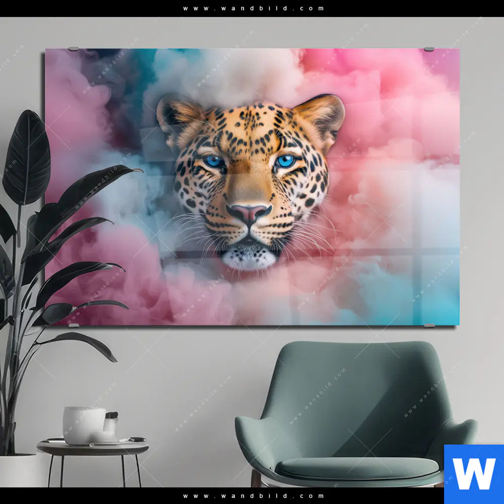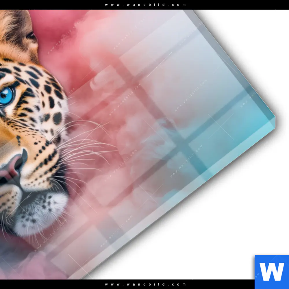 Acrylglasbild | Leopard im Farbnebel | Querformat