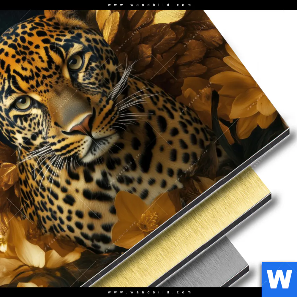 Aluminiumbild gebürstet | Goldflügel-Leopard | Quadrat