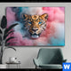 Aluminiumbild gebürstet | Leopard im Farbnebel | Quadrat