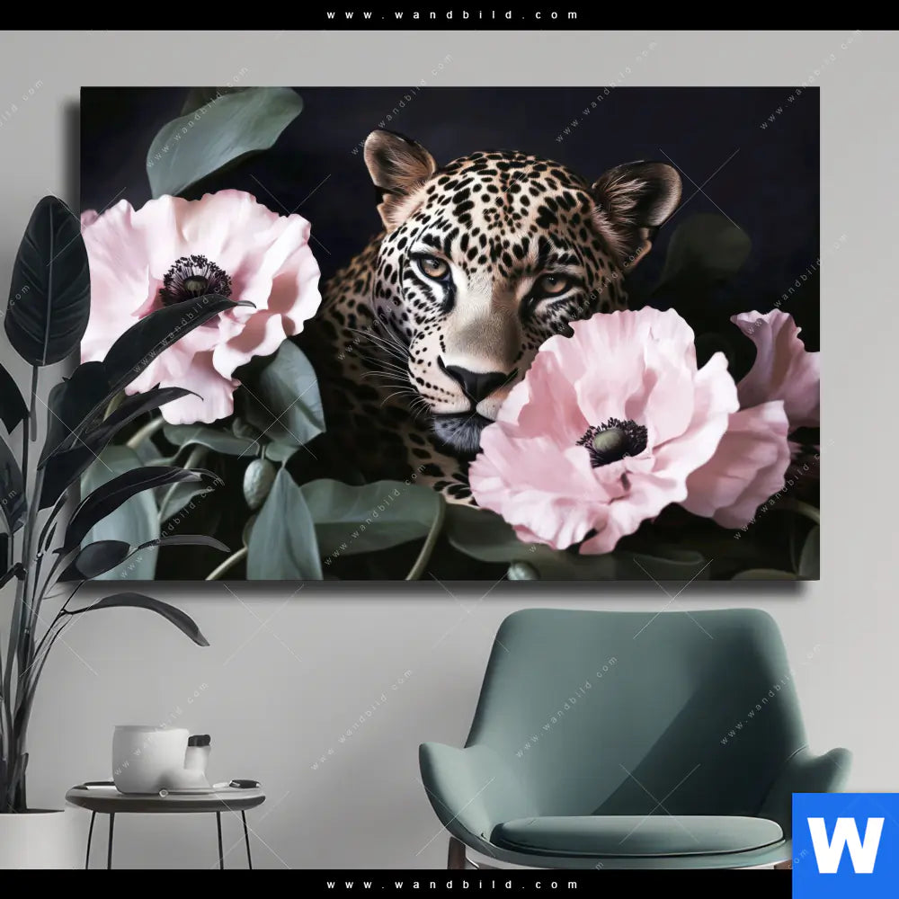 Leinwandbild | Blumen und Raubkatzenmagie | Querformat