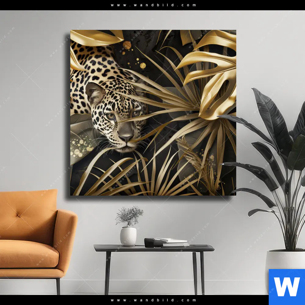 Leinwandbild | Leopard in goldener Tarnung | Quadrat
