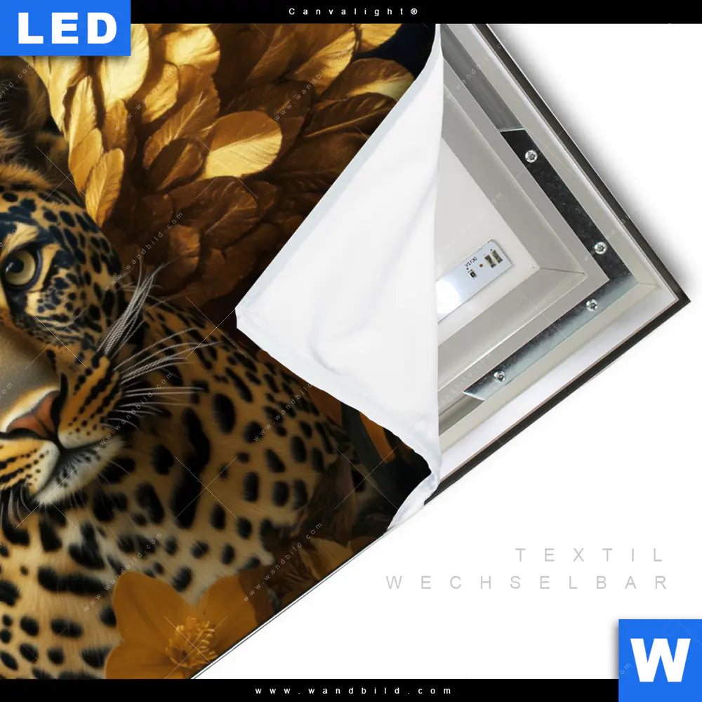 Canvalight® TEX Leuchtbild | Goldflügel-Leopard | Querformat