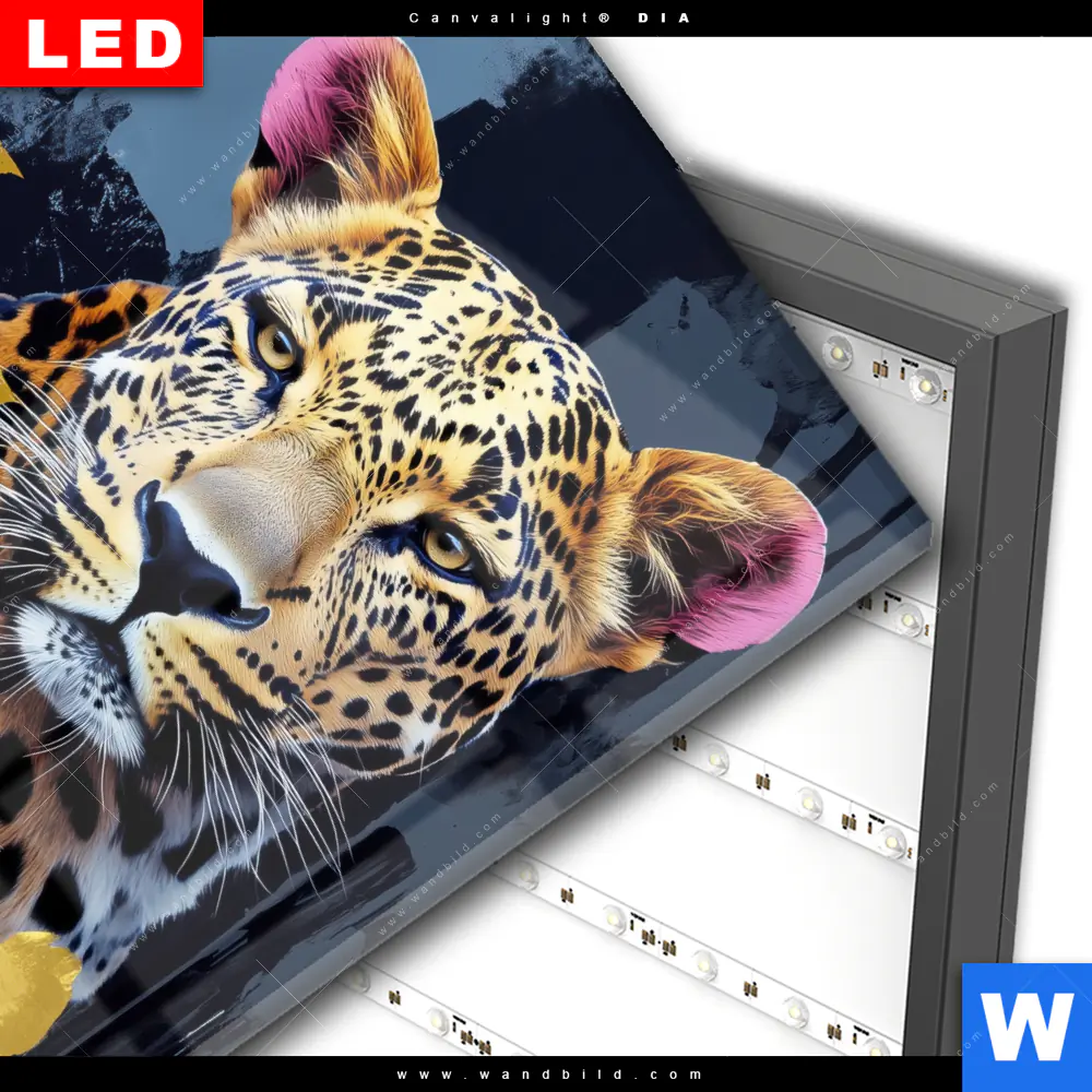 Wechselmotiv Acrylglas Canvalight® DIA | Leopard - Eleganz trifft Farbe | Quadrat