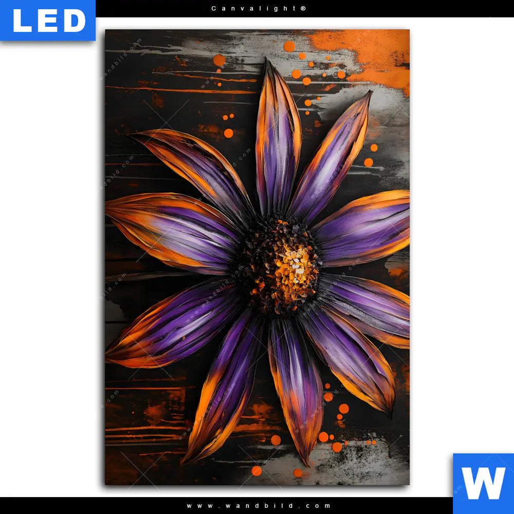 Canvalight® TEX Leuchtbild | Abstrakte Blume in Orange & Lila | Hochformat
