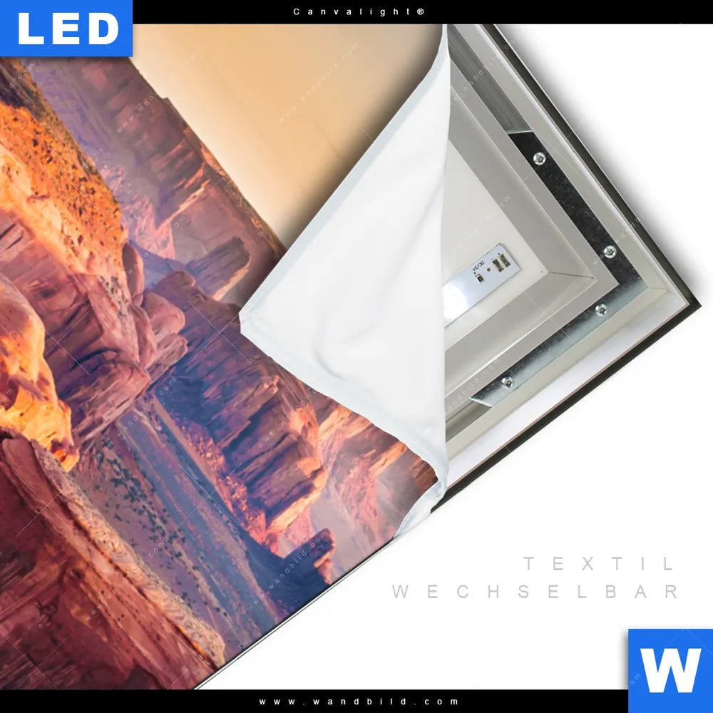 LED-Textilrahmen-Bild mit austauschbarem Landschaften Textil-Druck (Wechselbild)
