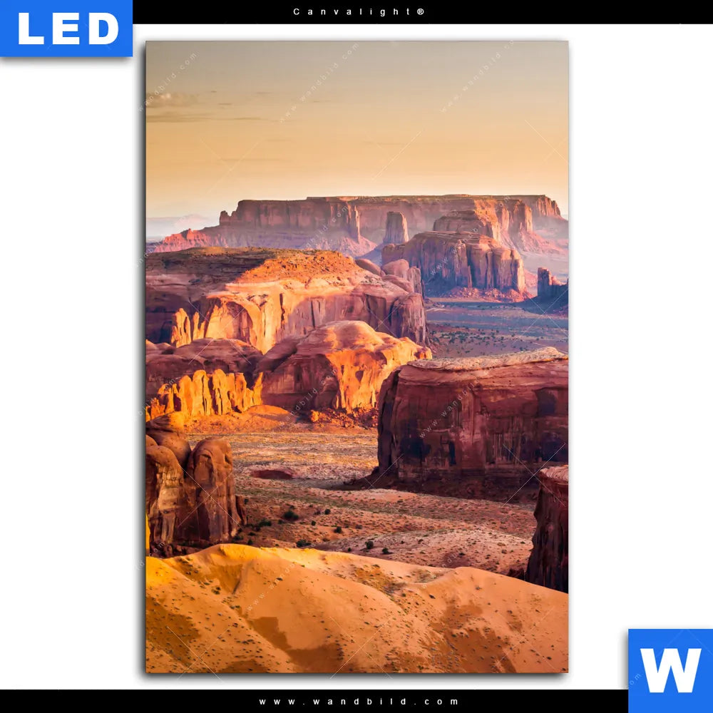 Canvalight® TEX Leuchtbild | Felsen bei Sonnenuntergang | Hochformat