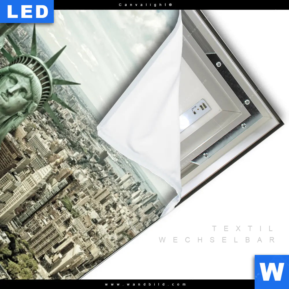 Canvalight® TEX Leuchtbild | Freiheit über Manhattan | Hochformat