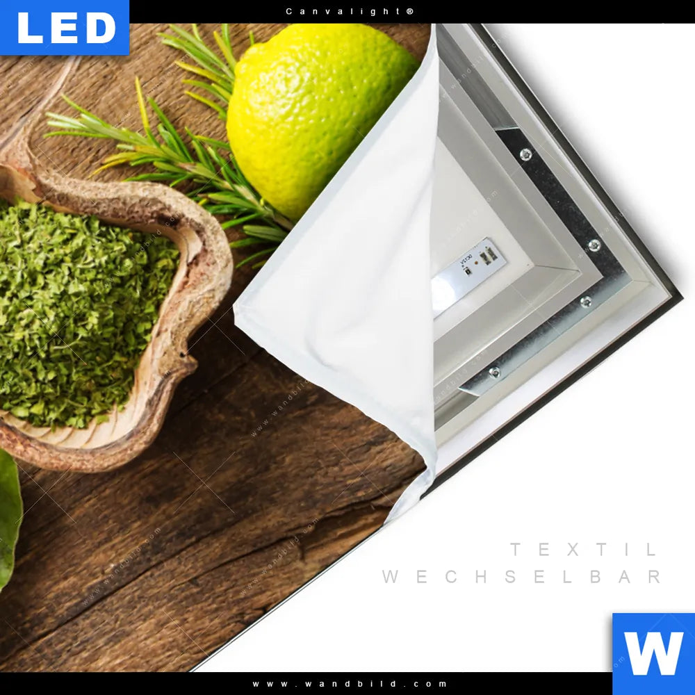LED-Textilrahmen-Bild mit austauschbarem Essen - Trinken Textil-Druck (Wechselbild)