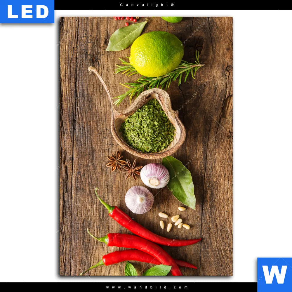 Canvalight® Leuchtbild | Gewürze & Kräuter auf Holz | Hochformat