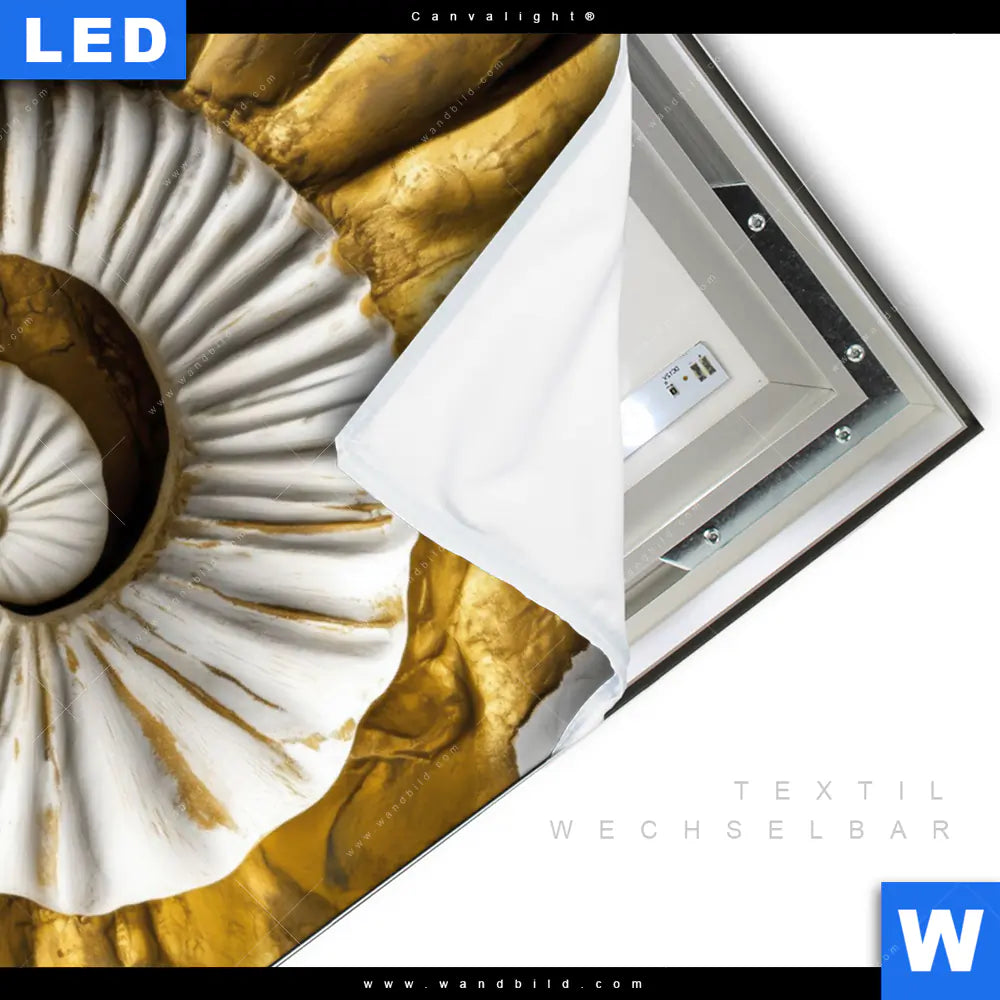 Canvalight® TEX Leuchtbild | Goldene Muschel-Kunst | Hochformat