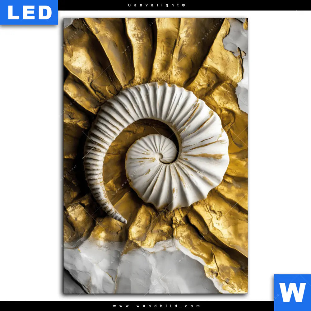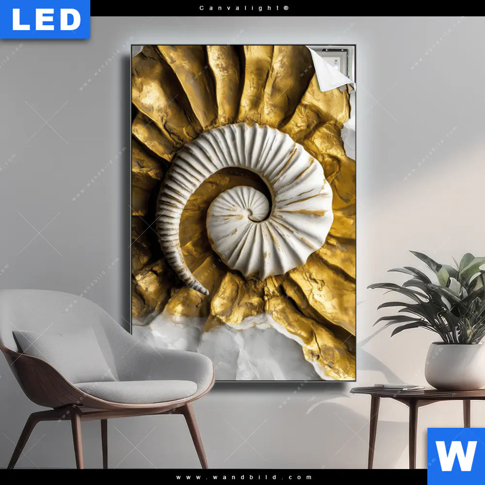 Canvalight® Leuchtbild | Goldene Muschel-Kunst | Hochformat