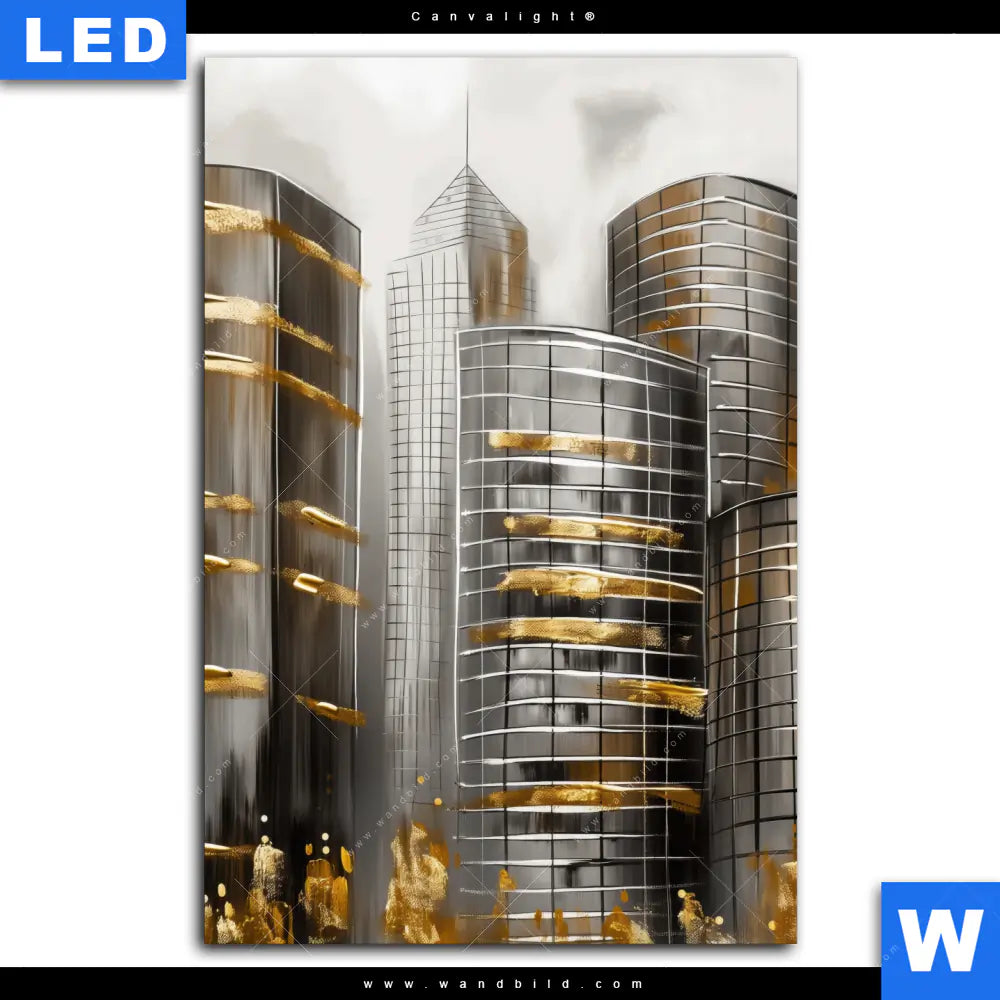 Canvalight® Leuchtbild | Goldene Skyline Vision | Hochformat