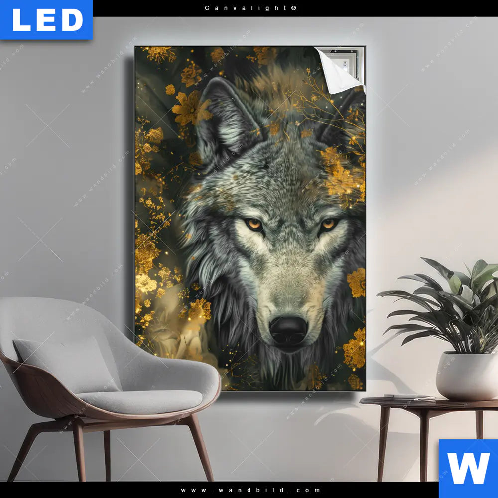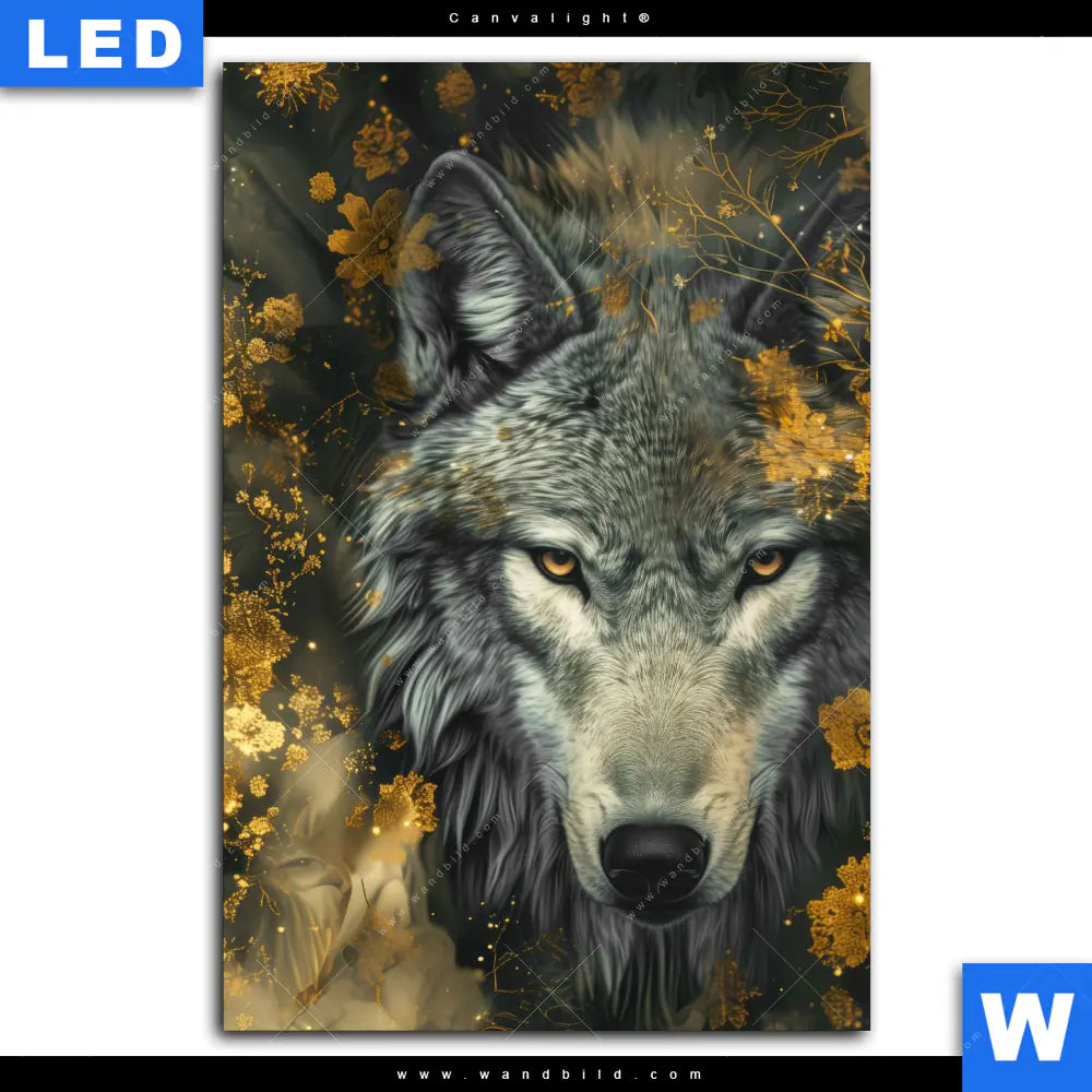 Canvalight® Leuchtbild | Goldener Wolfblick | Hochformat