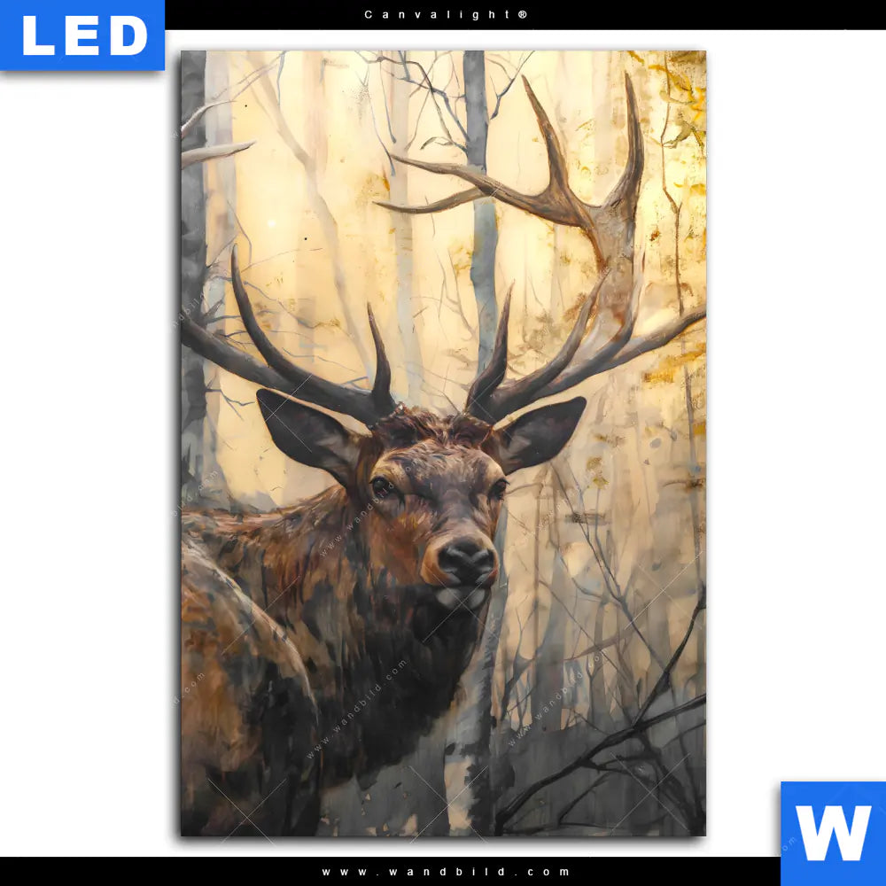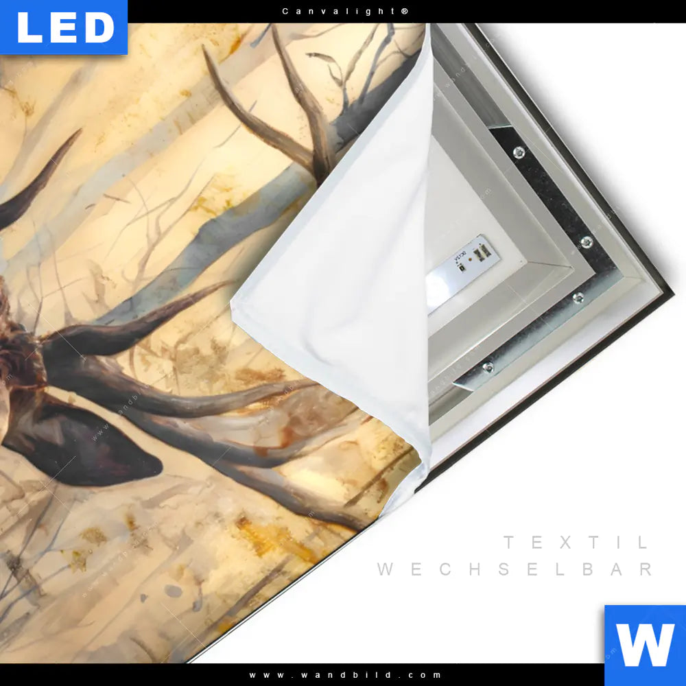Canvalight® TEX Leuchtbild | Hirsch im Morgenlicht | Hochformat