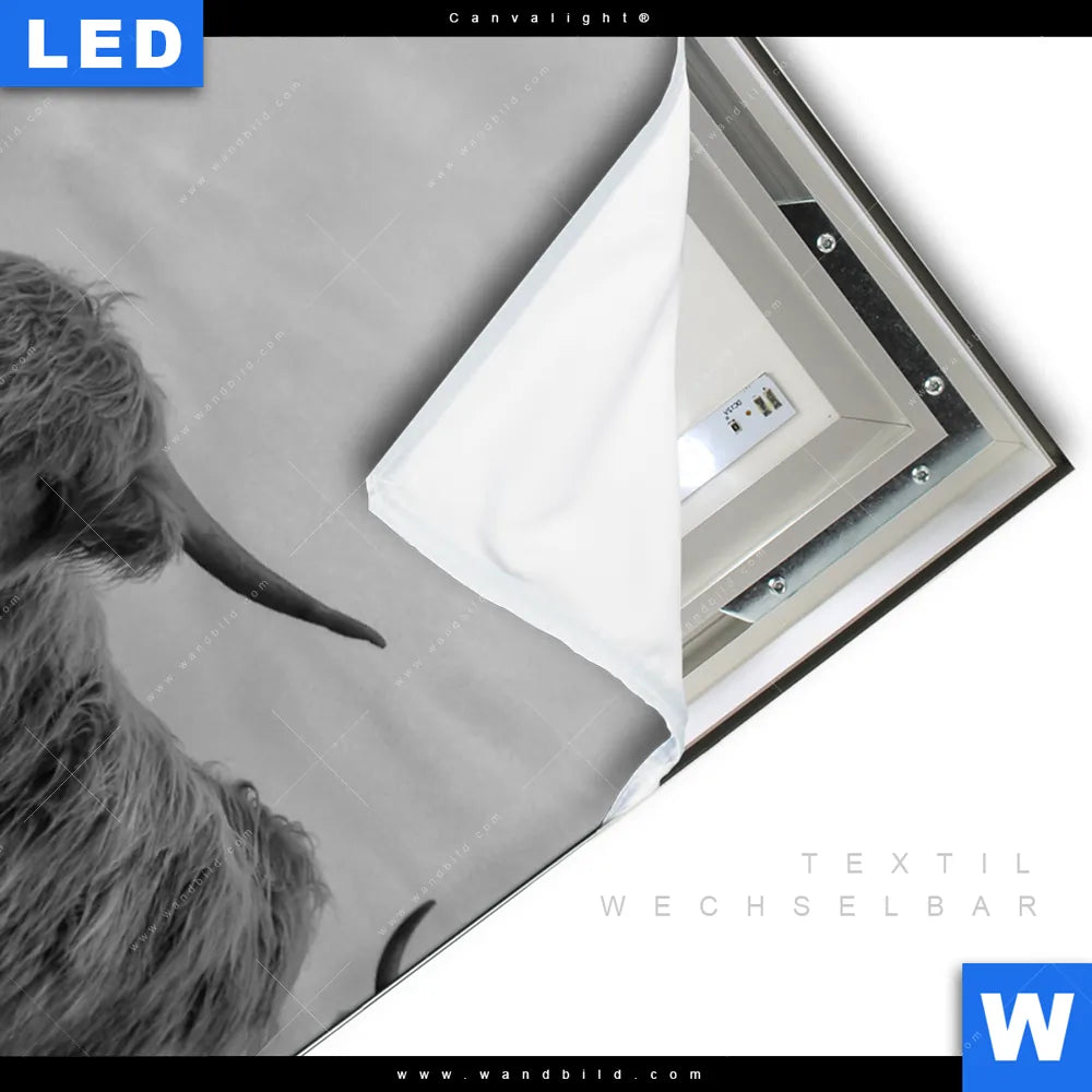 Canvalight® TEX Leuchtbild | Hochland-Rind Schwarz-Weiß | Hochformat