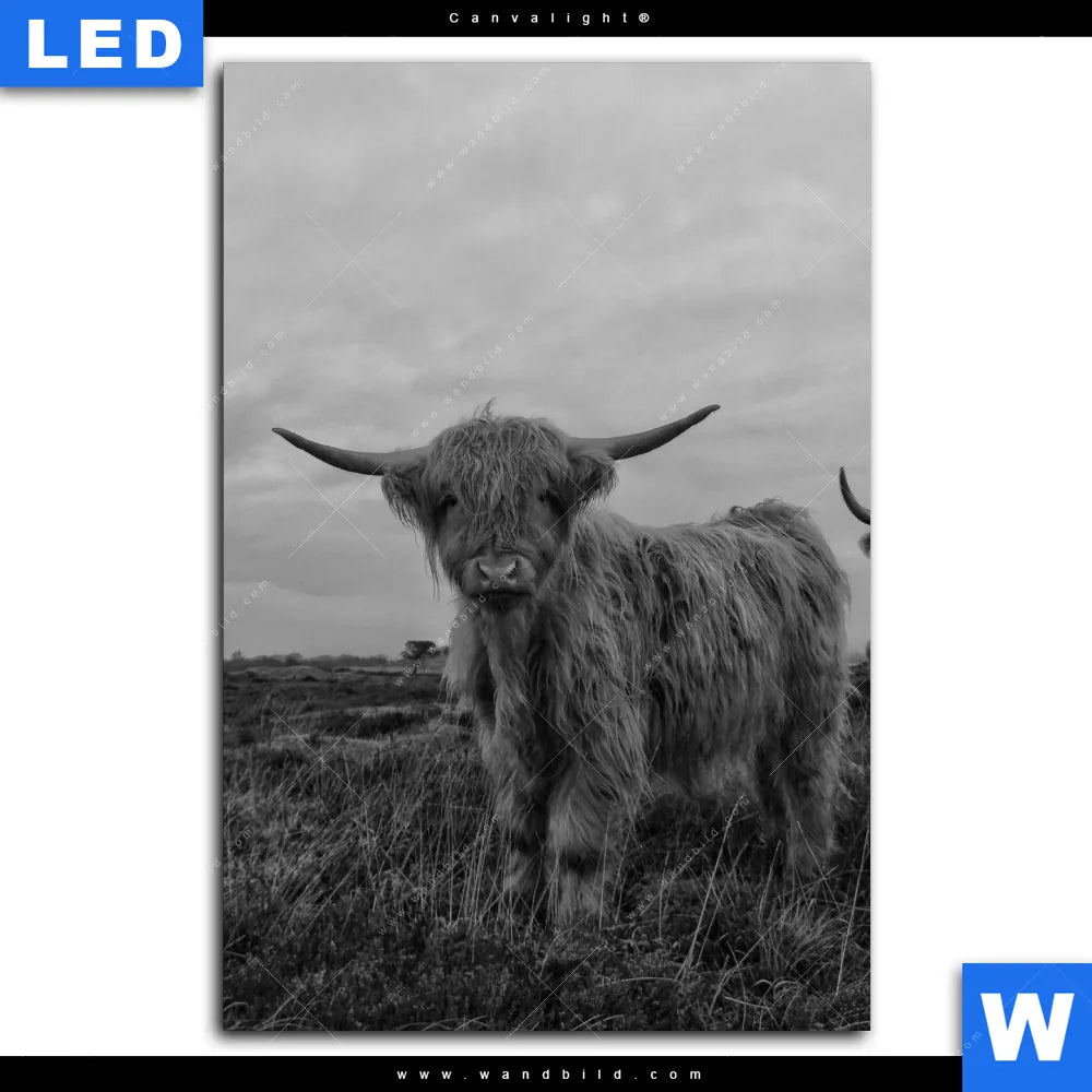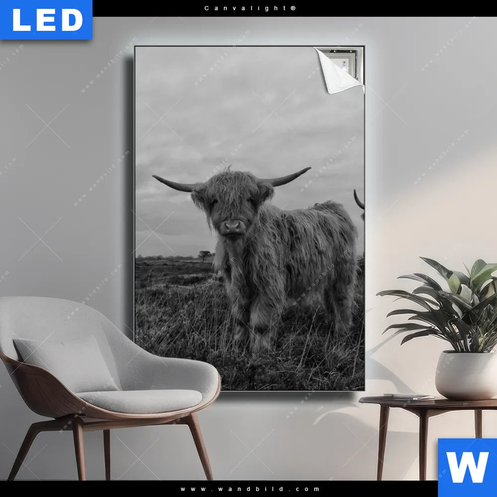 Canvalight® Leuchtbild | Hochland-Rind Schwarz-Weiß | Hochformat