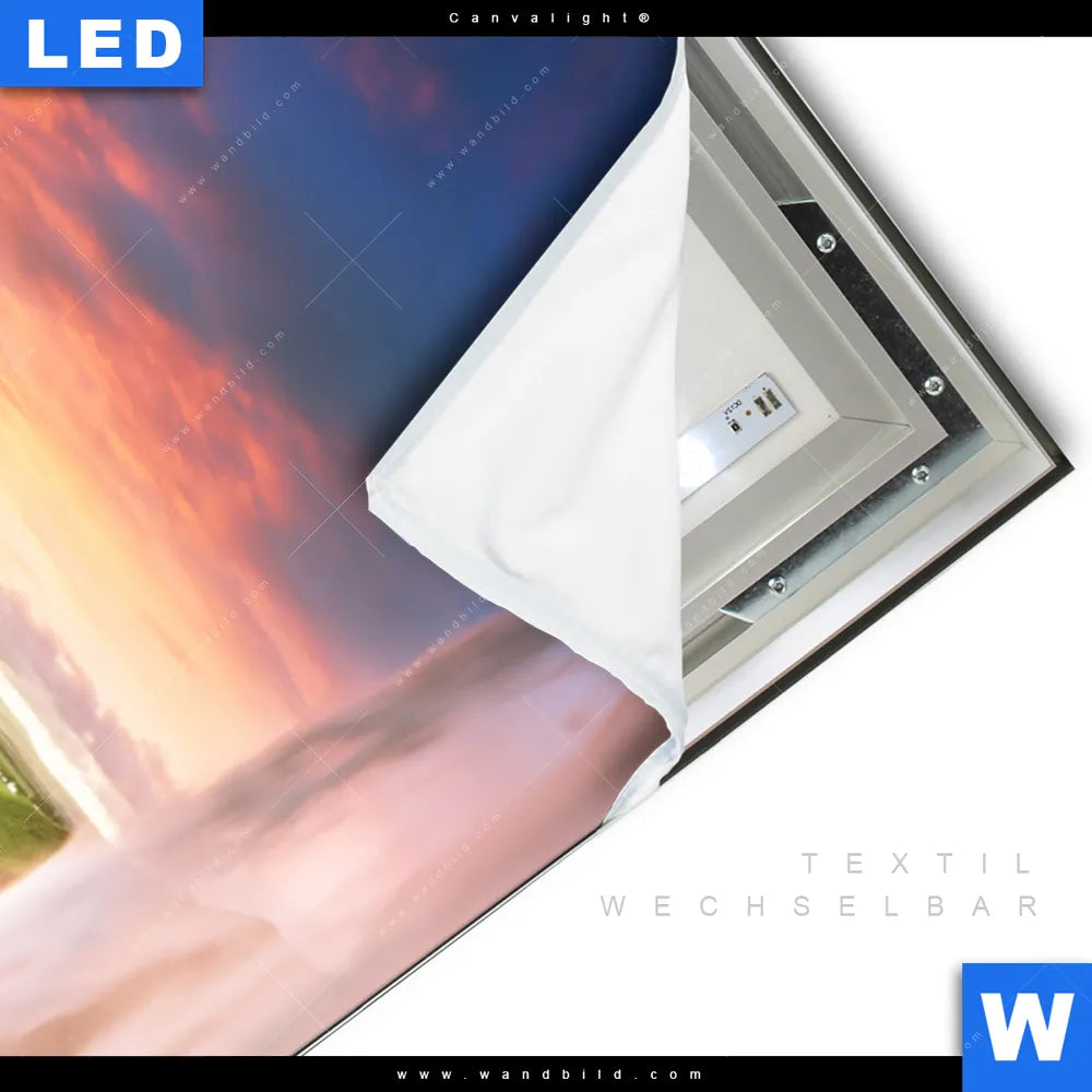 LED-Textilrahmen-Bild mit austauschbarem Landschaften Textil-Druck (Wechselbild)