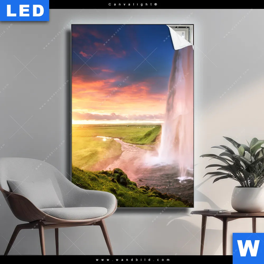Canvalight® Leuchtbild | Isländischer Wasserfall | Hochformat