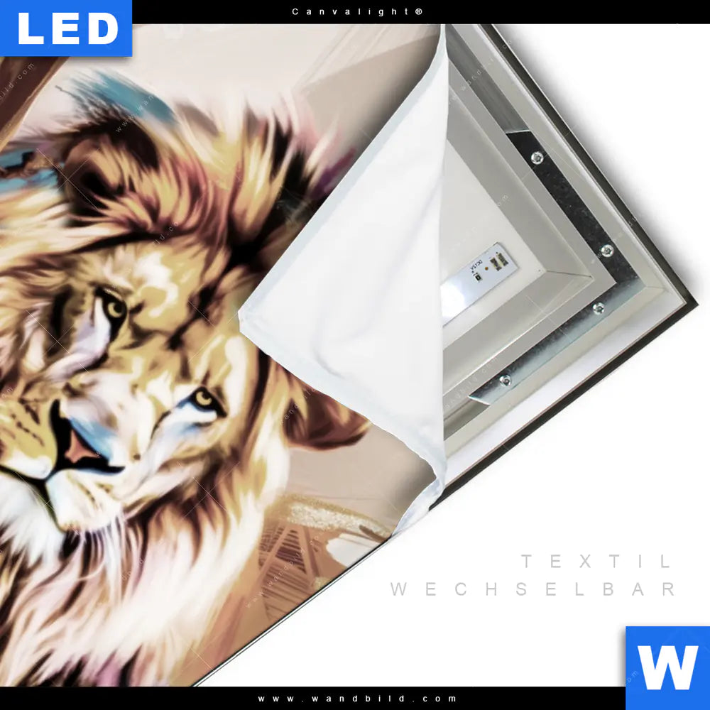 Canvalight® TEX Leuchtbild | Löwe - König der Tiere | Hochformat