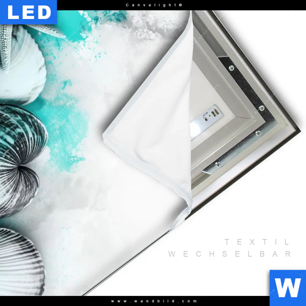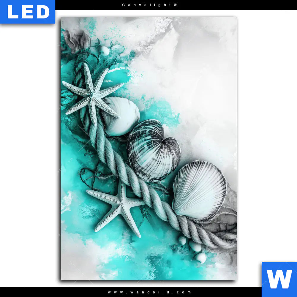 Canvalight® TEX Leuchtbild | Muscheln-Meereszauber in Türkis | Hochformat
