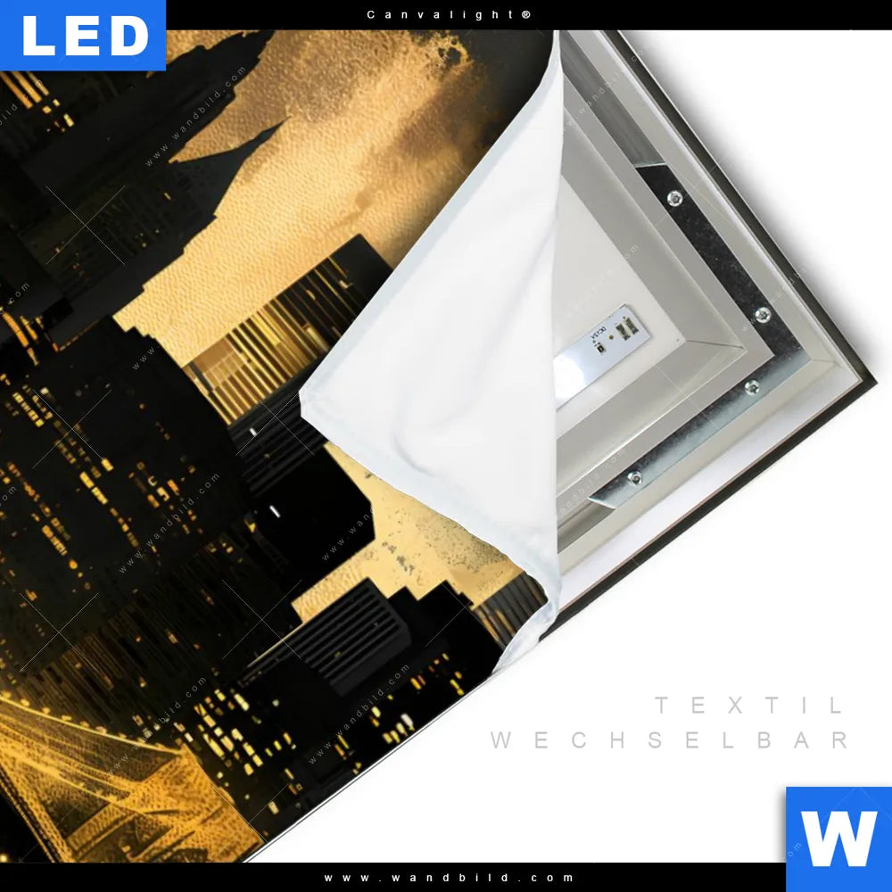 LED-Textilrahmen-Bild mit austauschbarem Städte - Skylines Textil-Druck (Wechselbild)