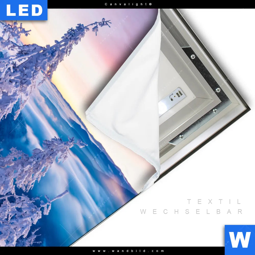 LED-Textilrahmen-Bild mit austauschbarem Landschaften, Winter Textil-Druck (Wechselbild)