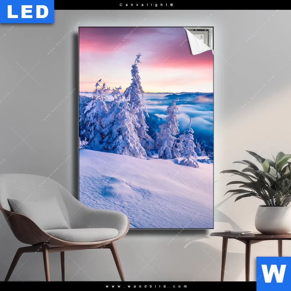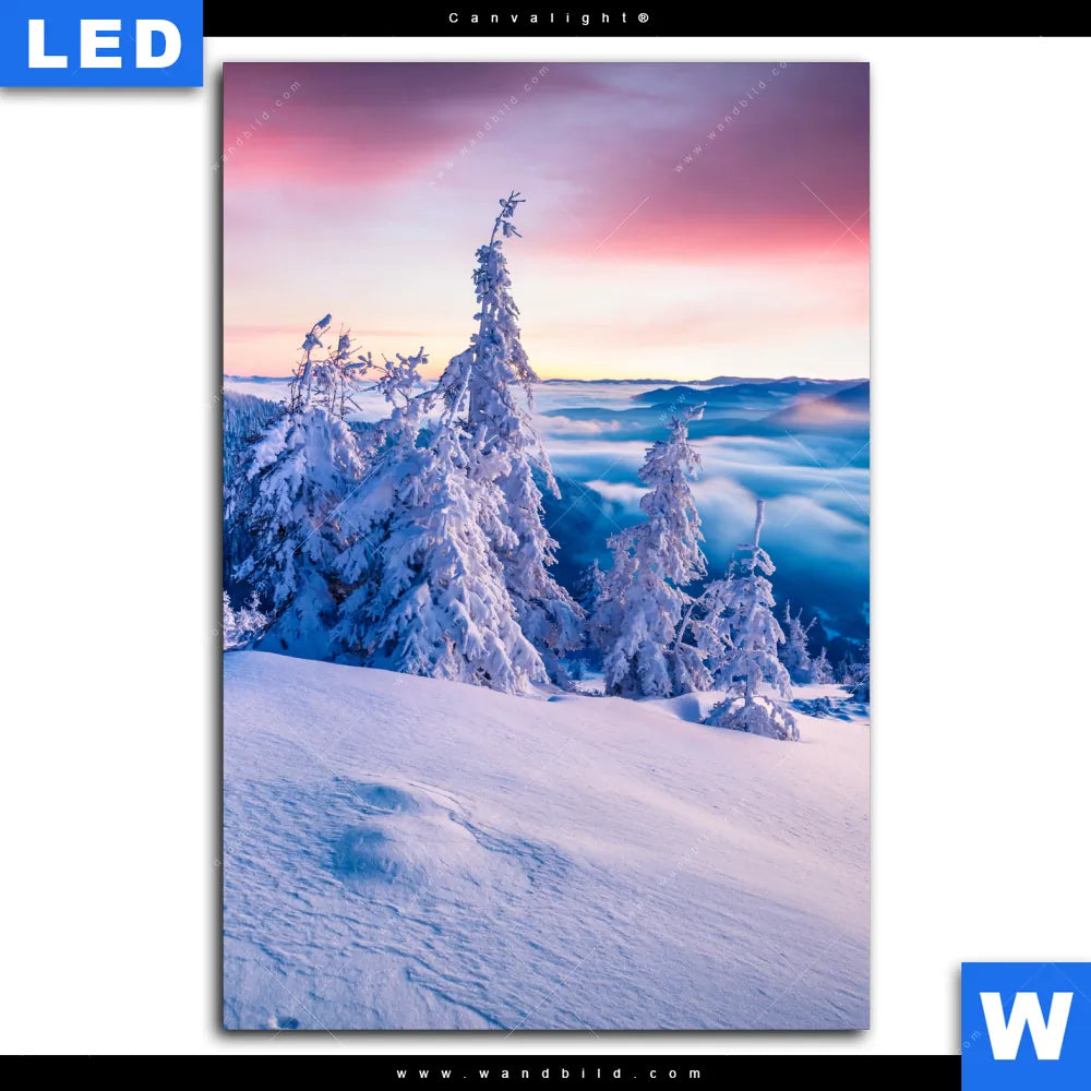 Canvalight® Leuchtbild | Sonnenaufgang im Schnee | Hochformat