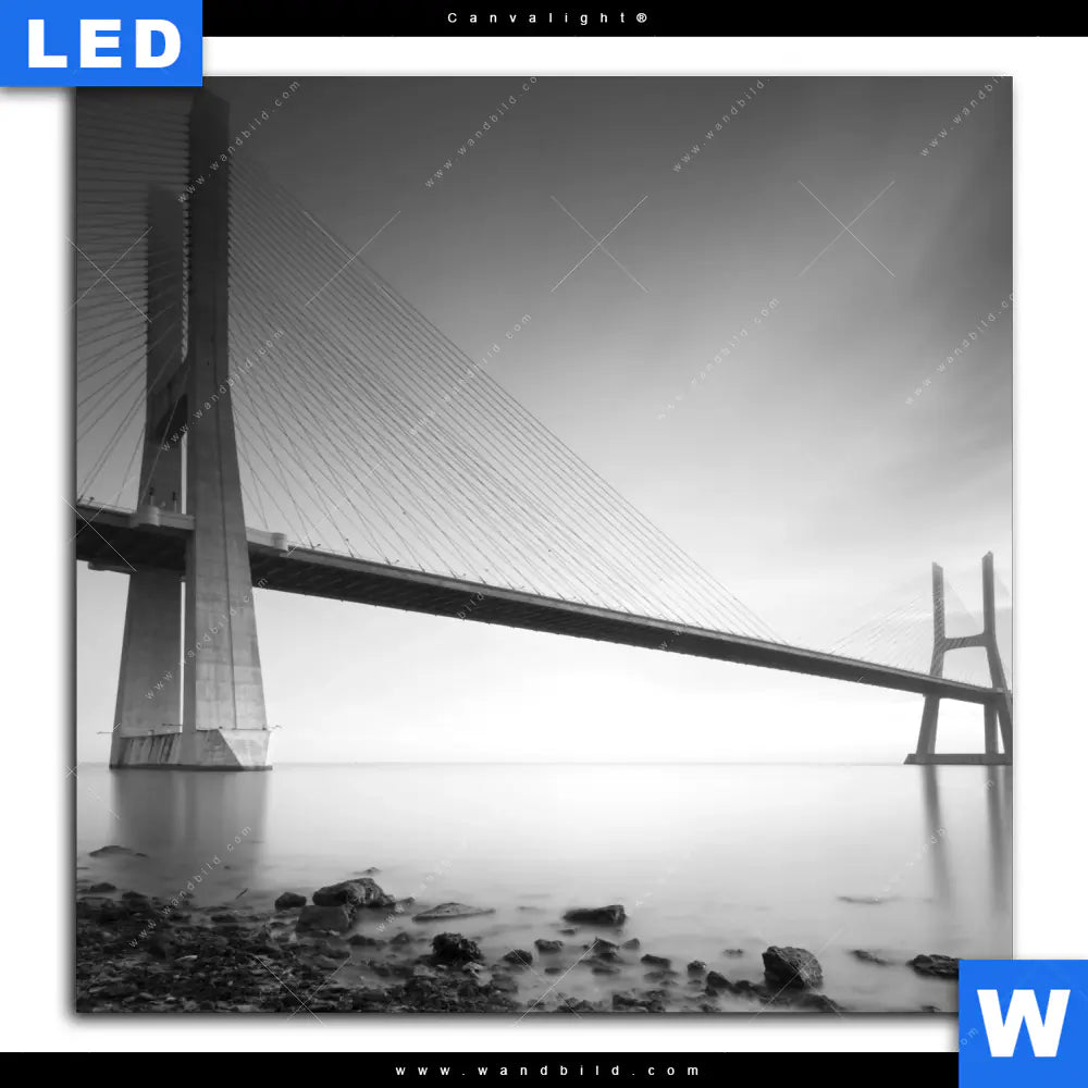 Canvalight® TEX Leuchtbild | Brücke am weiten Meer | Quadrat