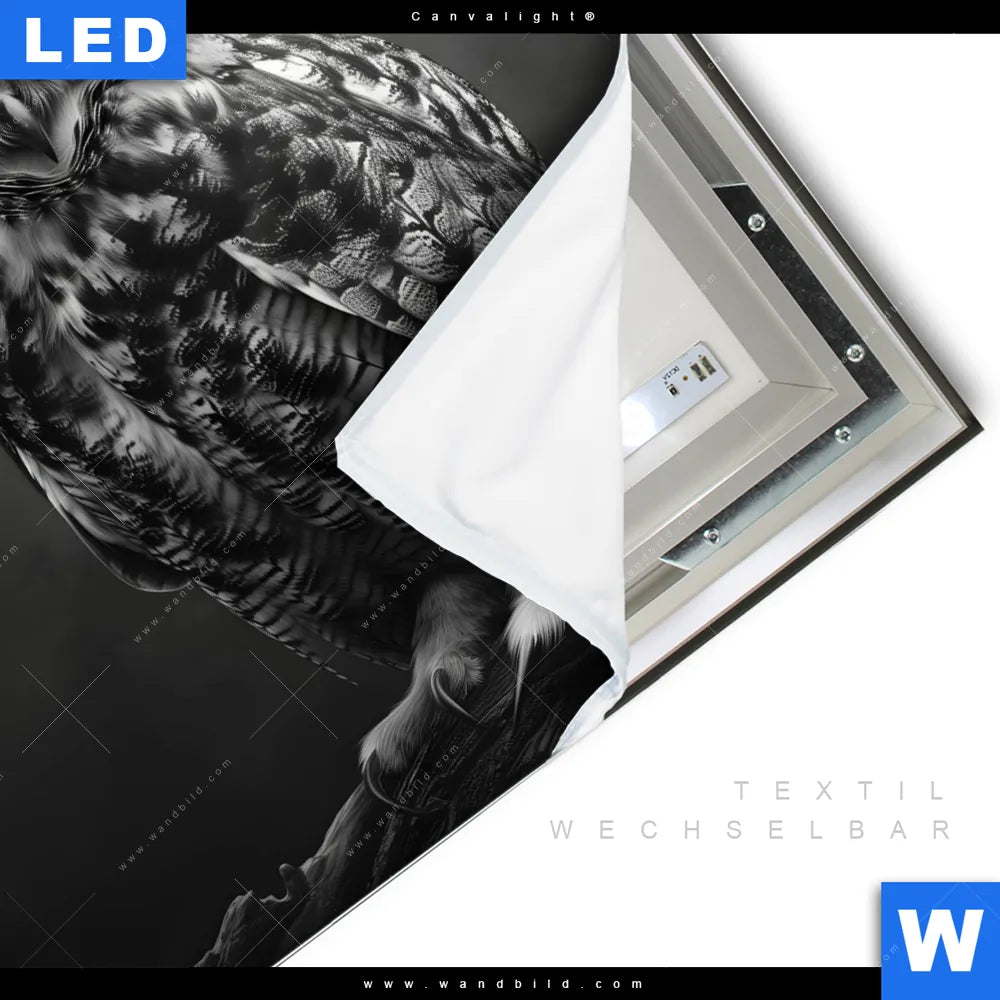 Canvalight® TEX Leuchtbild | Düstere Eleganz der Eule | Quadrat