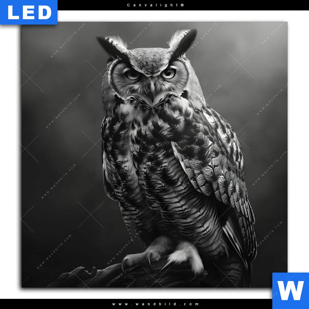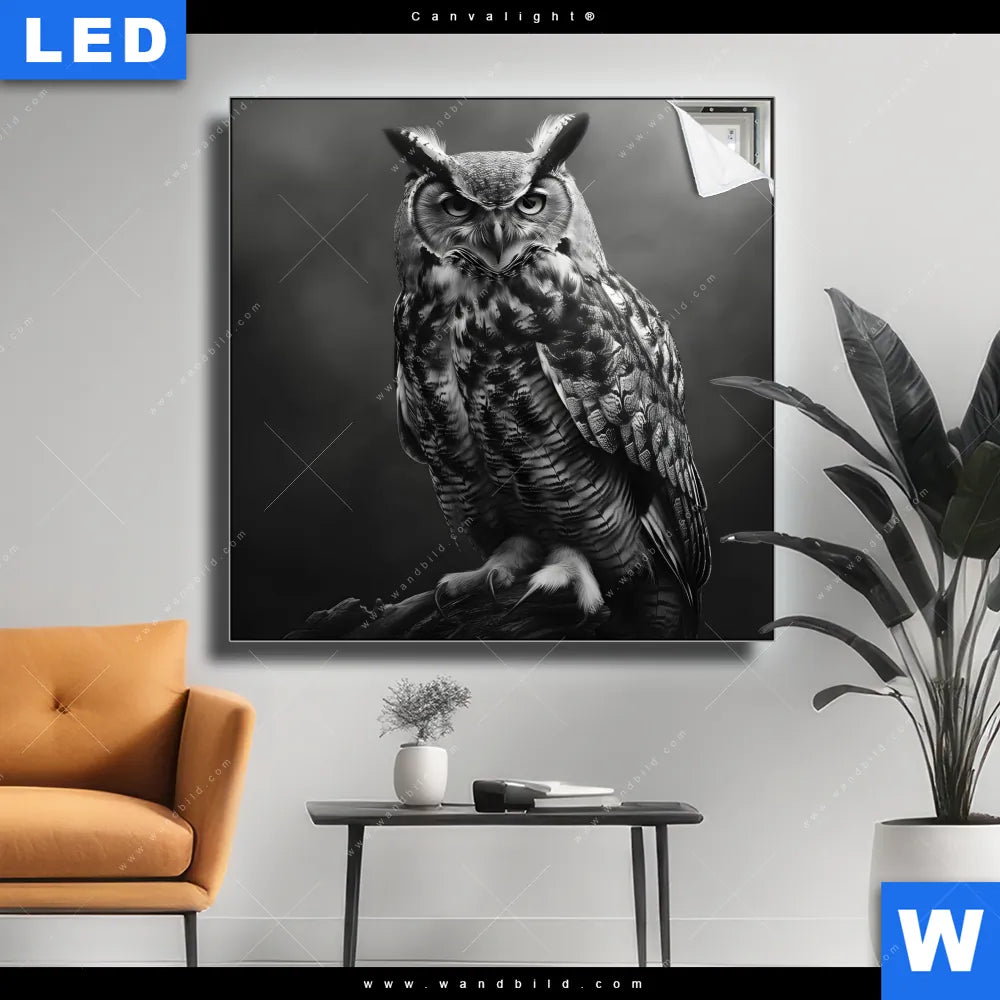Canvalight® Leuchtbild | Düstere Eleganz der Eule | Quadrat