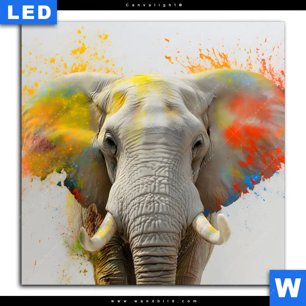 Canvalight® Leuchtbild | Farbenexplosion mit Elefant | Quadrat