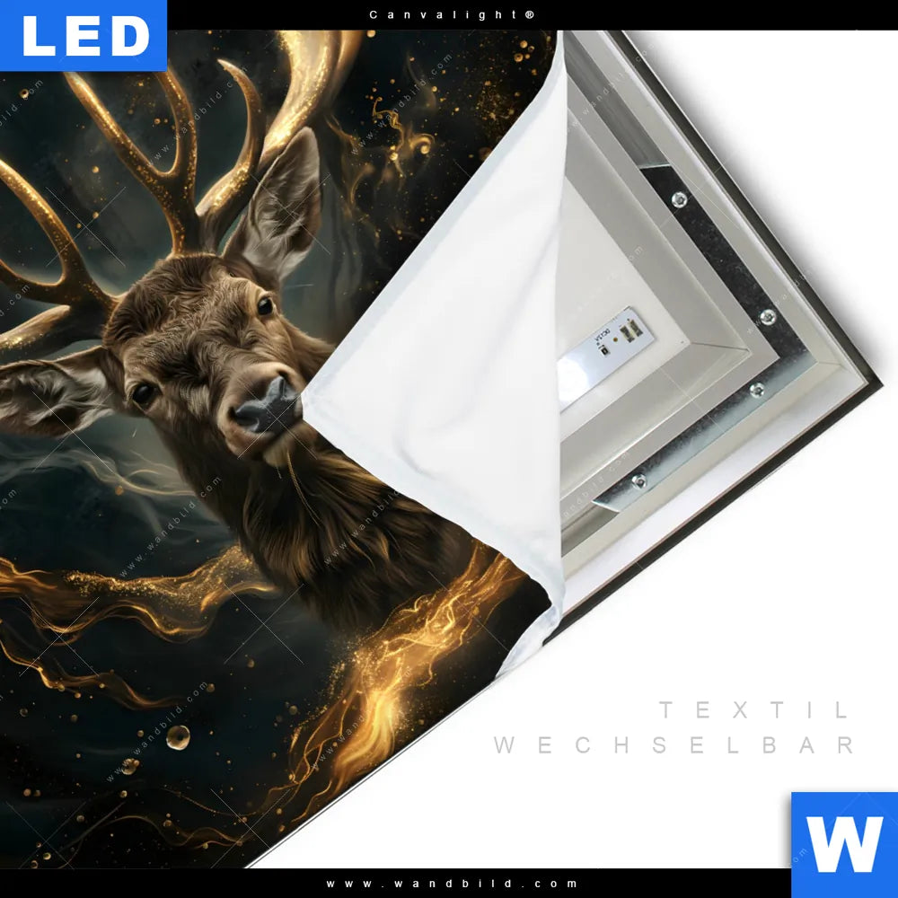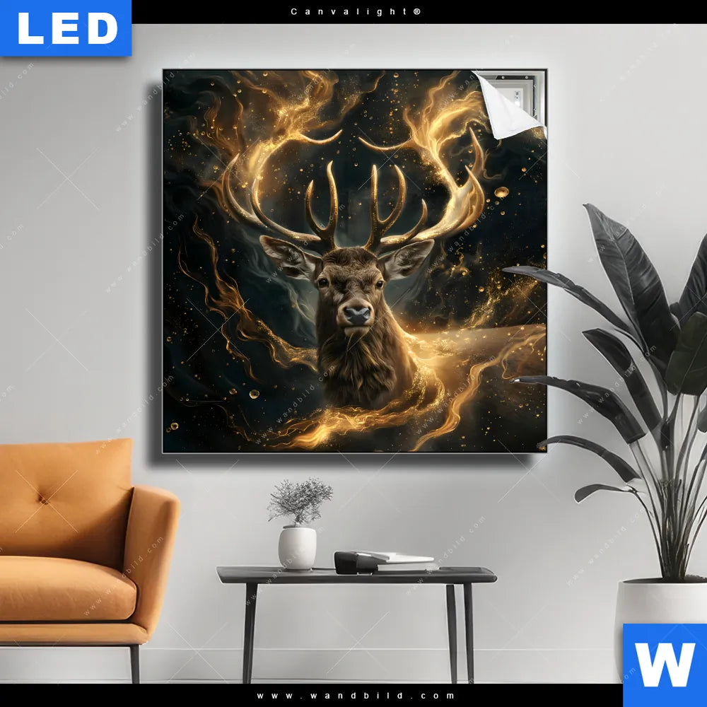 Canvalight® TEX Leuchtbild | Magischer Hirsch im Sternenlicht | Quadrat