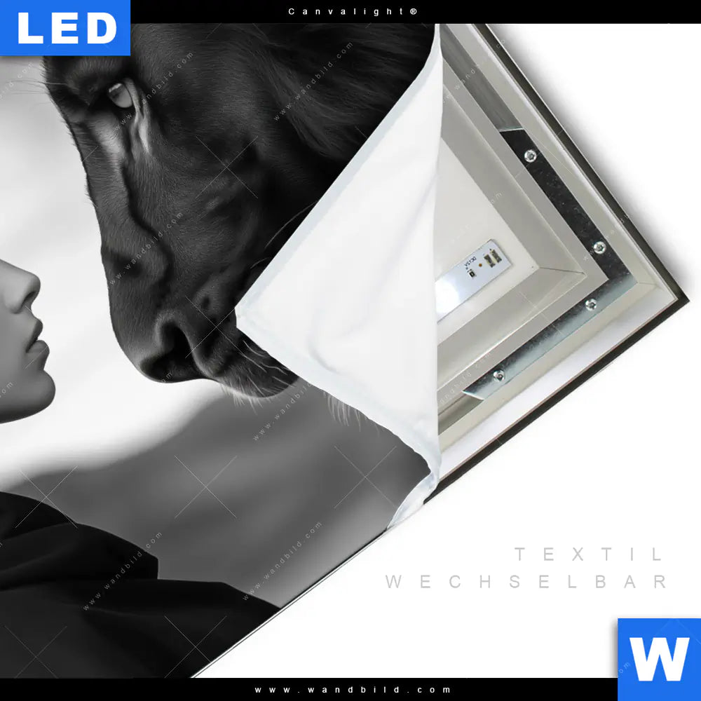 Canvalight® TEX Leuchtbild | Seelenblick - Löwe & Frau | Quadrat
