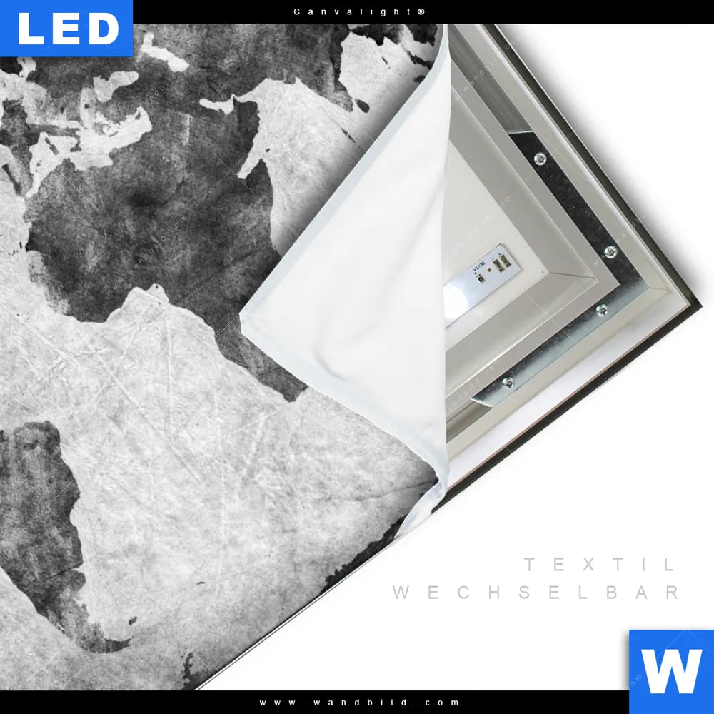 LED-Textilrahmen-Bild mit austauschbarem Karten Textil-Druck (Wechselbild)